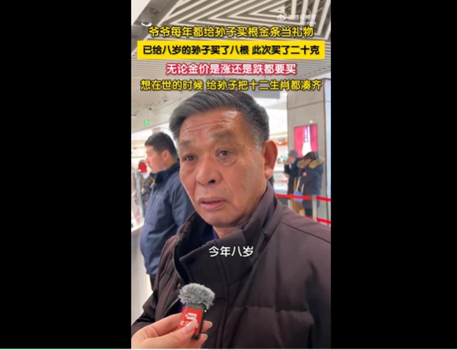 近日,北京一位爷爷给孙子买生肖金条的视频引起热议。
