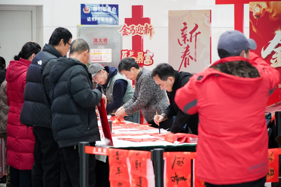 一笔一画王人祝贺,一墨一香王人吉祥。“春联、福字的书写让书道清亮地融入日常活命,收货祝贺的东说念主鼎沸,写的东说念主也同意。”丁申阳暗示,上海市书协近些年每年都会在春节前组织书道家为市民手写春联、福字,本年,各个区书协的会员也积极报名插足。仅2月2日,就移动了四个小分队,诀别走进上海站、上海南站、虹桥站和松江站。不仅书写气势扩大,遮蔽面也更广,15场行径点位既有交通要津、艺术场馆,也有武警总队、三甲病院,还有科创公司、商圈和社区,为更平方的东说念主群奉上文化祝贺。