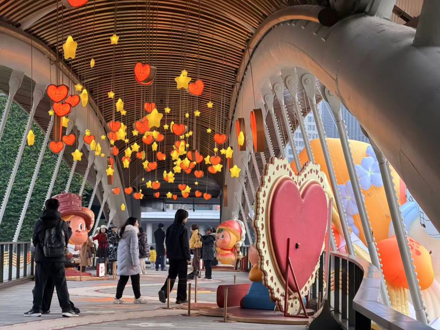 前滩太古里“好意思瞻念桥”上的星星东说念主安装。李昂 摄