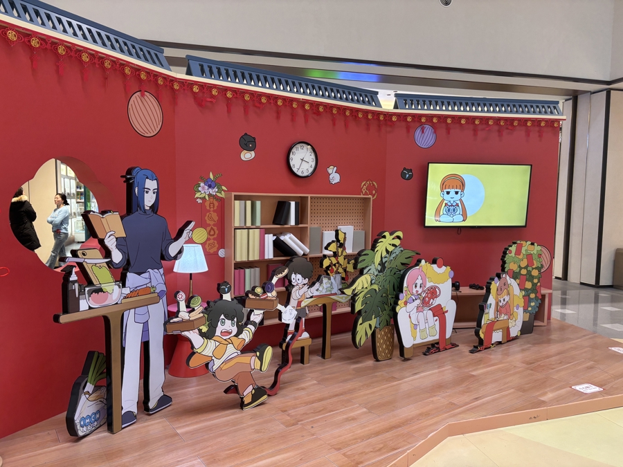 罗小黑新春主题快闪的东说念主物立牌。阮佳雯 摄