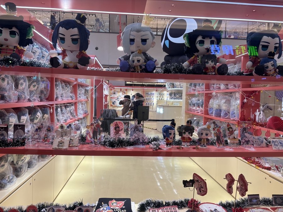 再往里走,便是这次新春主题的快闪店。“喵到福到”“喵气生财”的俏皮对子贴在店铺门脸,玻璃橱窗内,罗小黑、无尽、比丢等脚色的终端邻近林林总总。“有路演行径的时候,这里最吵杂。”伴计告诉记者,“许多项目齐补过好几劣货了。”