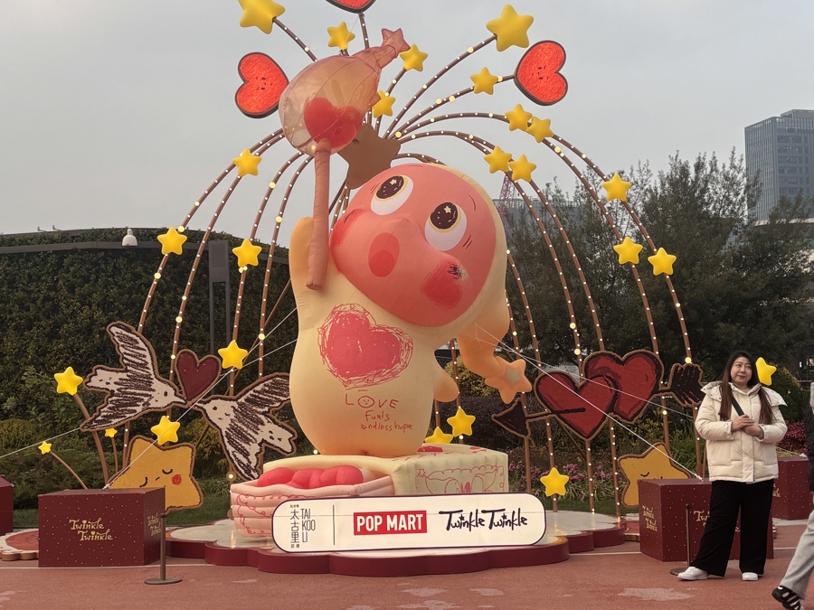 BFC荟萃泡泡玛特推出“新春游园会”,图为MOLLY“舞饱读生财”安装。李昂 摄