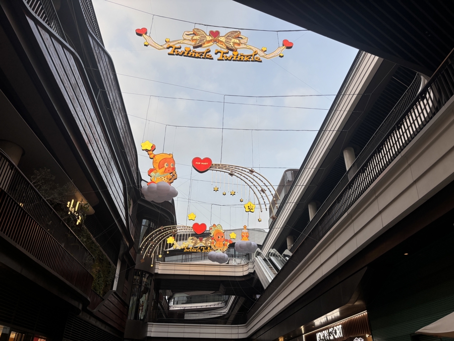 可供“打卡”的黑甜乡场景,洒落在市集的不同边际。“好意思瞻念桥”前,巨型星星东说念主安装吊挂半空,它头戴蓝色花环,骑在优雅的白日鹅背上,钢琴、音符、星星与爱心在混身流转。移步至木区L1层的泡泡玛特店铺上方,头戴蝴蝶结的星星东说念主安心坐于蓬松云朵之中,心思适意。而在石区L4层茑屋书店的一角,一个嘴巴张成“o”型的星星东说念主,正力图高举一顶帽子局势的火把,造型俏皮灵动。踱步其间,愉悦与温馨的氛围在空气中静静流淌。