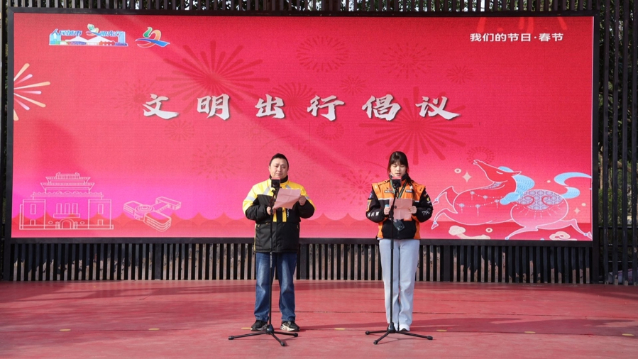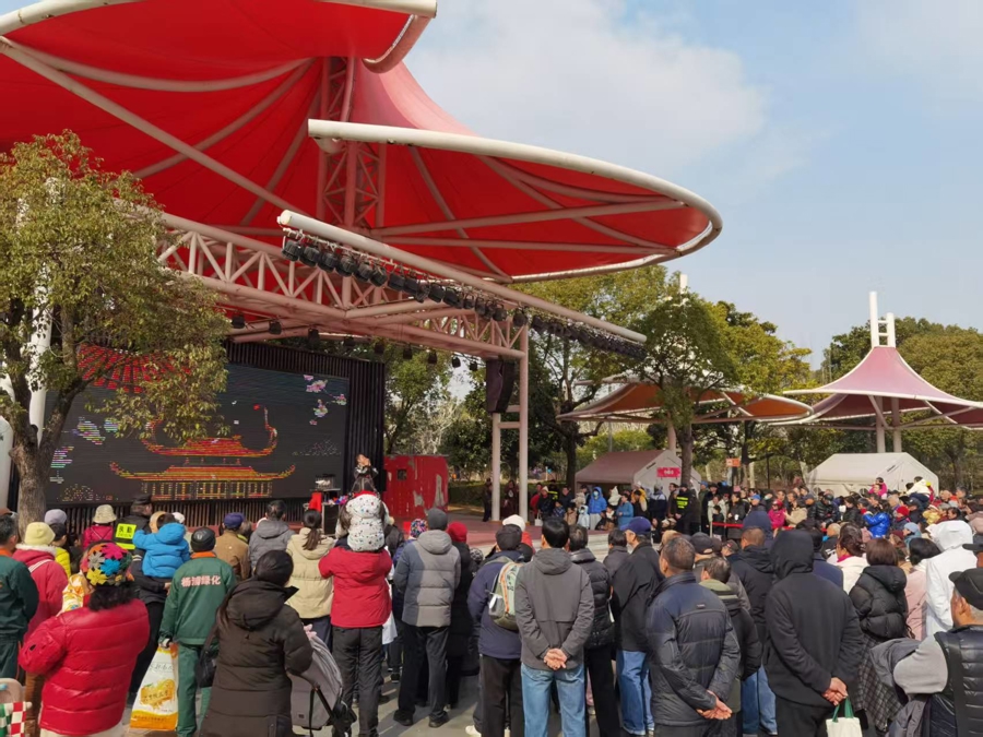 迎新游园会的文艺上演引诱市民搭客容身赏玩。文禀报记者 单颖文摄