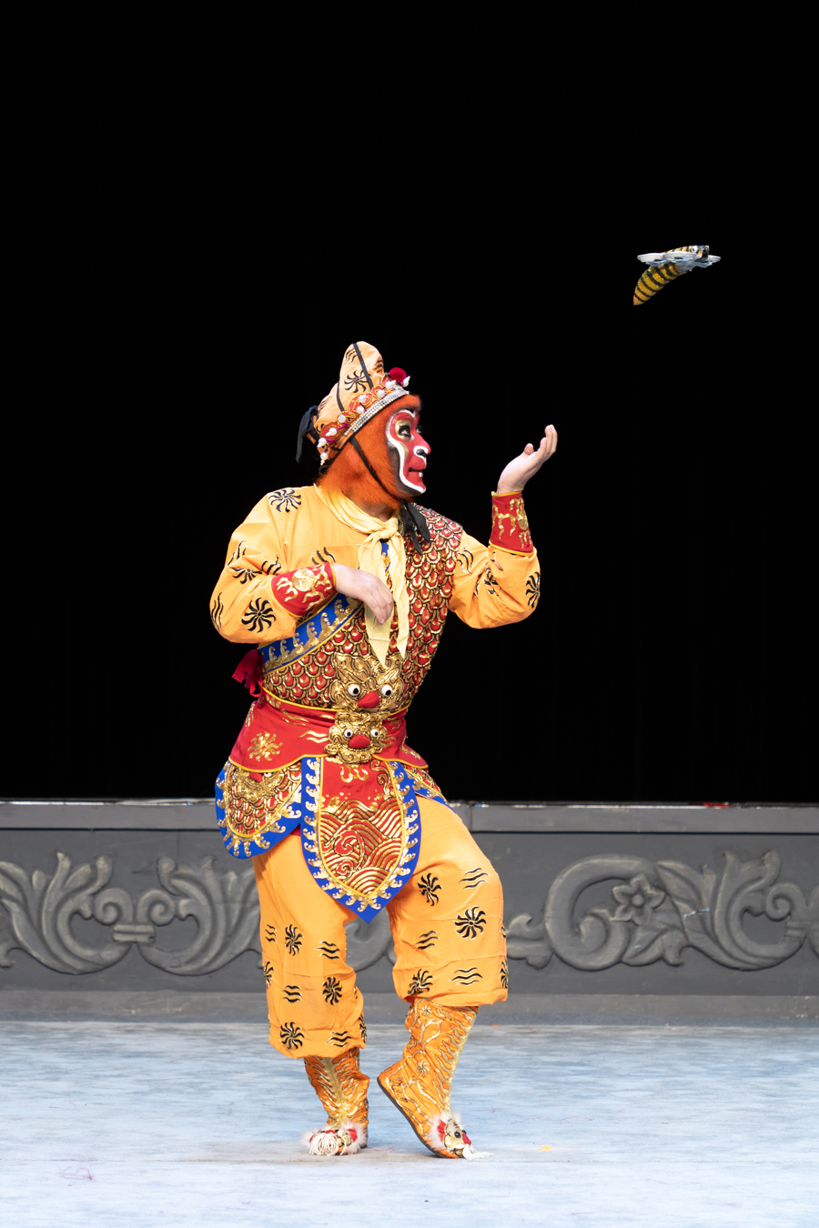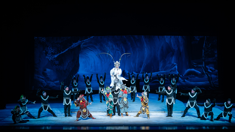由机器狗饰演的妖魔一霎现身,倒立着喊“小妖们,巡山啦”,惹得不雅众哈哈大笑;当金蟾大仙受邀试吃唐僧肉时,由无东说念主机饰演的“小蜜蜂”飞出舞台,在剧院上空盘旋……1月31日-2月1日,浙江中月婺剧团在上海好意思琪大戏院上演新观点婺剧《孙悟空三打白骨精》。这台破裂传统的献艺将前沿科技与婺剧艺术交融,用机器狗、无东说念主机、裸眼3D本事刷新不雅众对传统戏曲的印象。