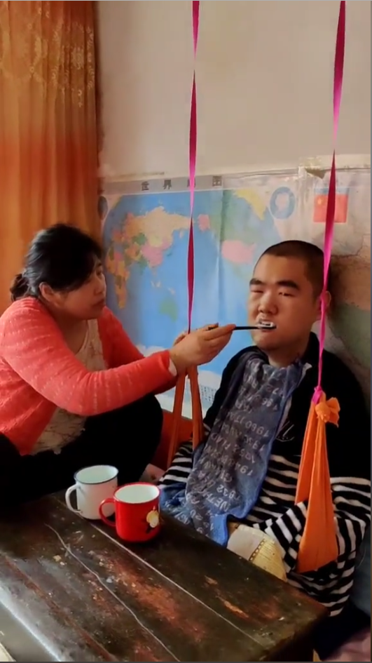 喂饭穿衣、扶起放倒、接大小便……这是杨红的日常。每晚,她六七次醒来,帮孩子翻身。“在三十多年照顾我的日子里,姆妈从未得到一宿安眠。”刁云逸说。