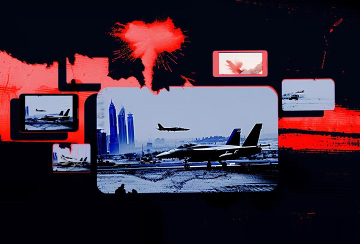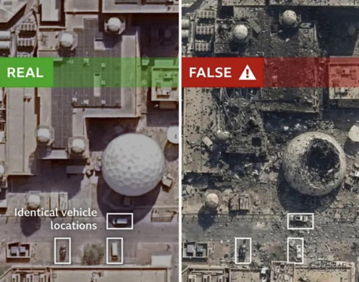 右边则是经过AI处理的作秀图,浮现基地照旧被炸。