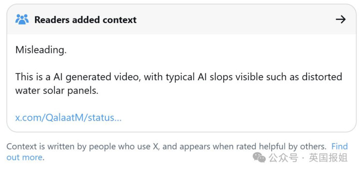 (X平台现在会在AI视频底下加这么的标注来提示)