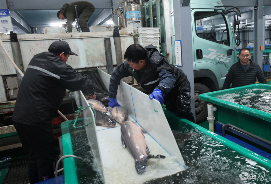 外地大鱼调运到上海。