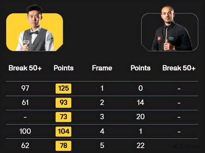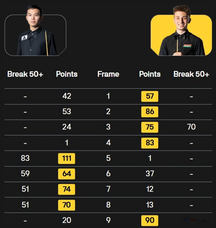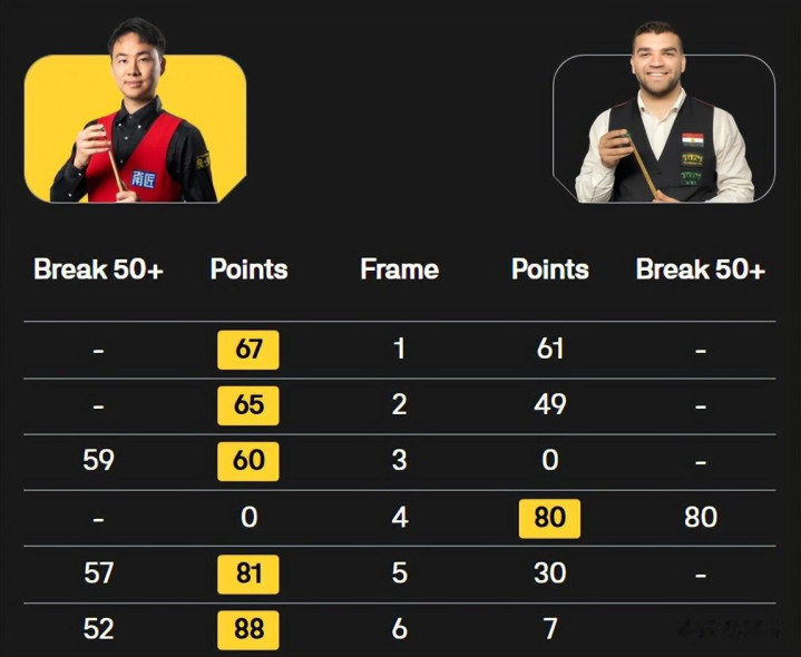 全场比赛,刘宏宇打出单杆83、59、51、51分,科瓦尔斯基打出单杆70、90分,刘宏宇的实力明显高于对手,但是前四局失误频频、浪费太多机会,以至于被对手绝杀,非常可惜!