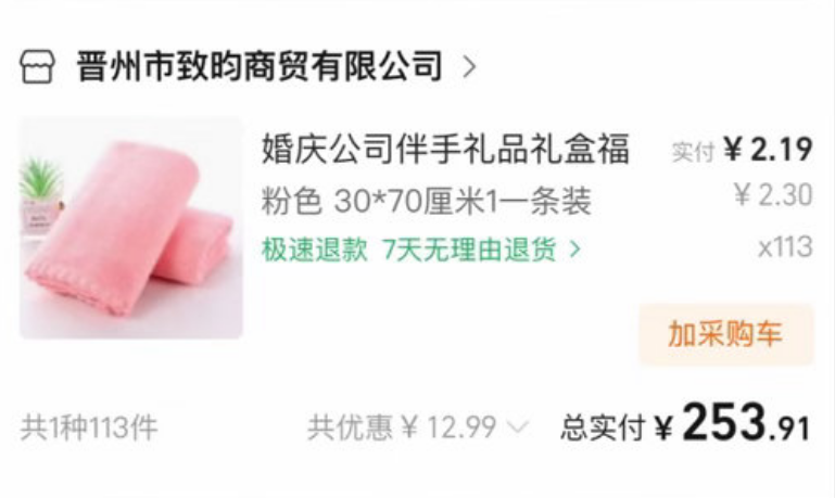 该网友还晒出多笔网购订单,所购商品均为廉价礼品、伴手礼,采购数目较多,单笔订单总金额齐集在250元至500元区间。