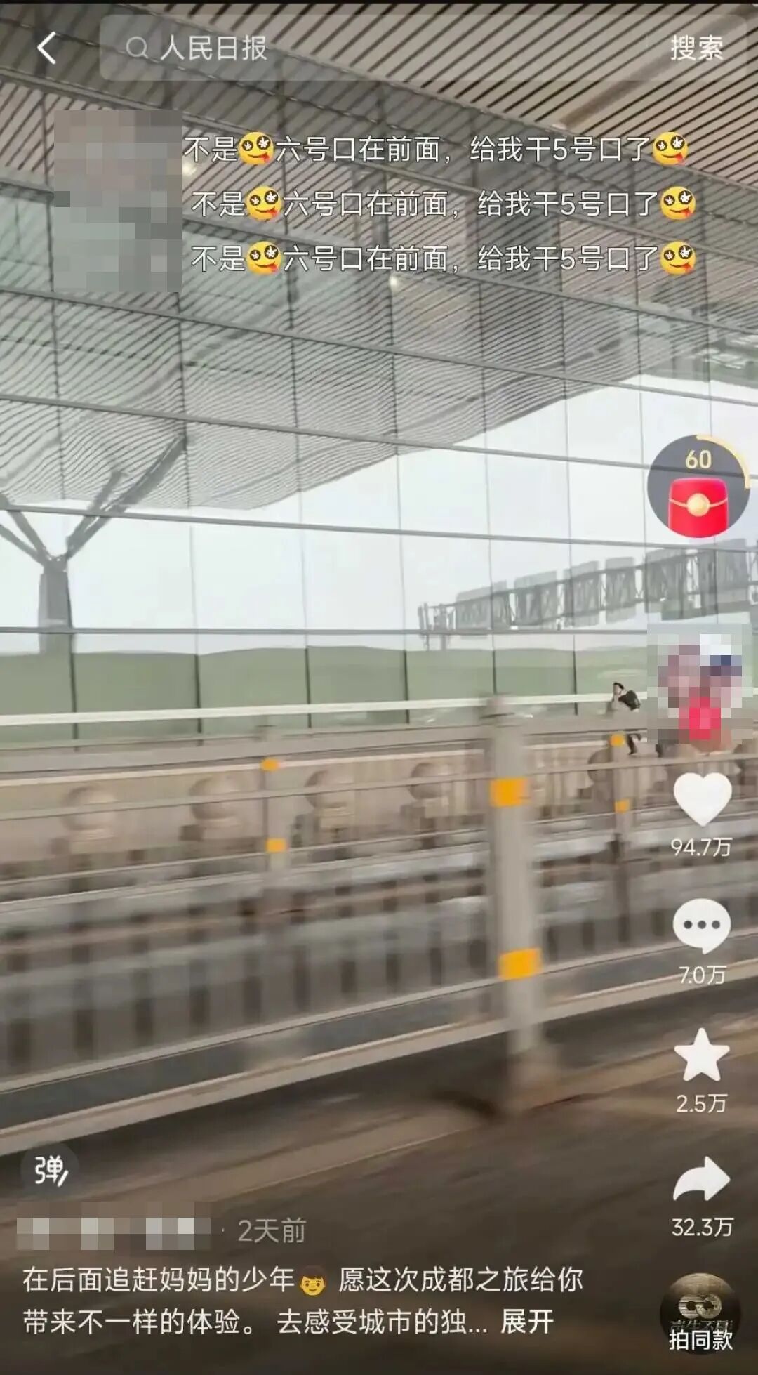 不虞,女儿在批驳区的留言让温暖故事蓦的回转。底本是姆妈送错了进站口,女儿本应该去6号口,却被姆妈送到了5号口,为了赶车女儿不得不决骤200米。