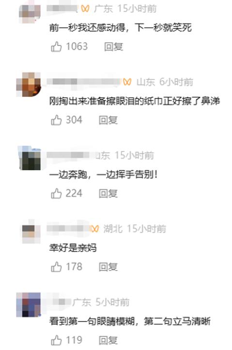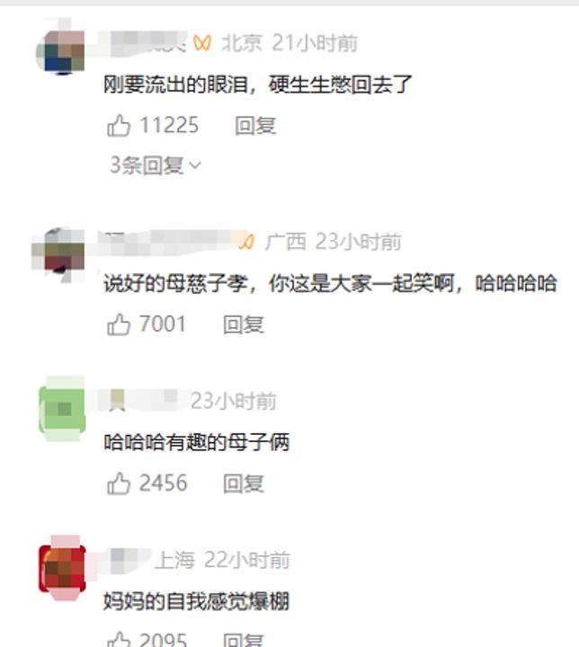 也有网友默示:“天然搞笑,但姆妈那一刻的感动是真确的”“无论追的是什么,子母之间的惦记是确切”。